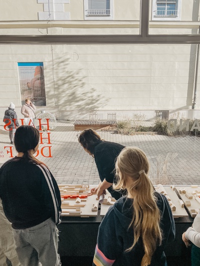 SCHULWORKSHOPSIm Rahmen der Ausstellung “Haus Hof Dorf - Wohnbau am Land” veranstaltete der Architektur Raumburgenland unter der Leitung von Sibylle Bader der Wanderklasse Schulworkshops für Schüler:innen der Ober- und Unterstufe. Zahlreichen Jugendlichen konnten so die Zusammenhänge zwischen unserer gebauten Umwelt und lebenswerten Ortskernen vermittelt werden.