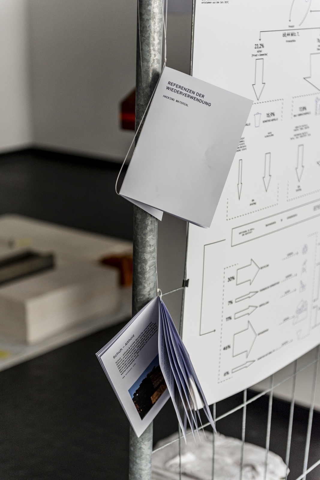 Im Rahmen der Architekturtage wurde das Ergebnis des Pilotprojekts präsentiert. Eine Ausstellung zeigte den Prozess und die Dokumentation des Pilotprojekts. Als „Schaulager“ konzipiert, wurden durch die Zurschaustellung exemplarischer wiederverwertbarer Bauteile und Materialien die komplexen Zusammenhänge hinter den Abläufen des zirkulären Bauens mit Sammeln, Sortieren, Aufbereiten und Wiederverwendung vermittelt.