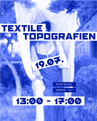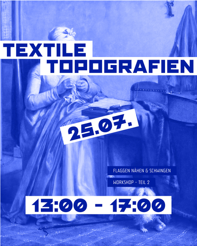 Gesammelte Geschirrtücher, Putzlappen oder Bettlaken werden am Dorfplatz bunt gefärbt und später zu Flaggen weiterverarbeitet, die Teil der Interventionen sind. Diese häusliche Arbeit bringen wir symbolisch in den öffentlichen Raum um sie dort performativ aber vor allem gemeinschaftlich sichtbar zu machen. Inspiriert vom burgenländischen Blaudruck arbeiten wir mit lokalen Techniken und Pigmenten um die Stoffe zu färben.